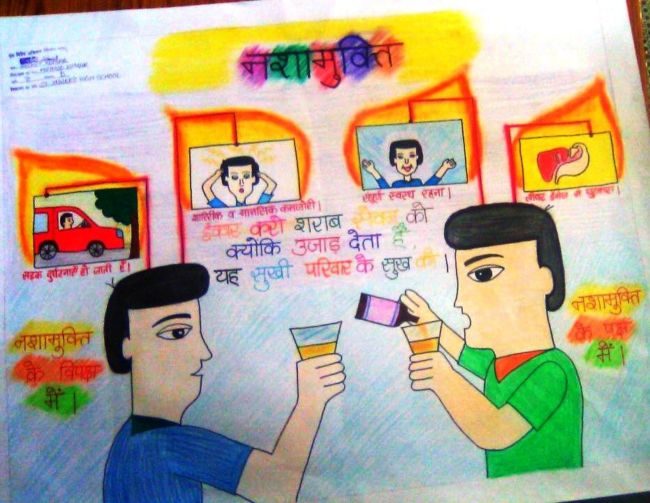 नशामुक्ति पर बच्चों ने चित्रकला के माध्यम से प्रस्तुत किए अपने विचार