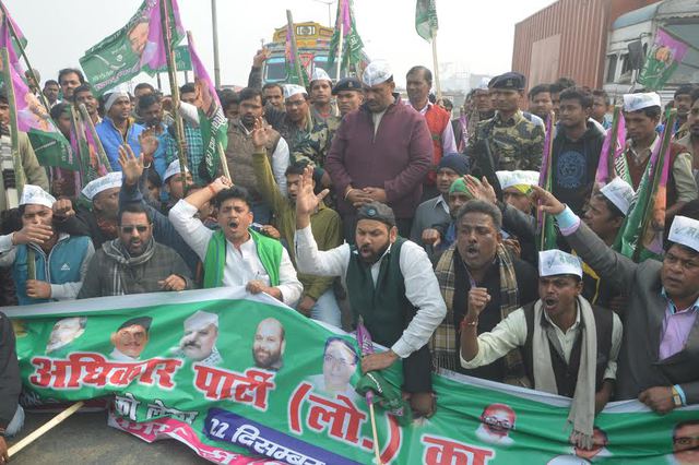 जन अधिकार पार्टी (लो) के चक्‍का जाम आंदोलन के दौरान पार्टी कार्यकर्ताओं ने राज्‍यभर में सड़क जाम कर दी और यातायात को ठप कर दिया. पार्टी के संरक्षक और सांसद राजेश रंजन उर्फ पप्‍पू यादव ने सड़क जाम के दौरान मीडिया को संबोधित करते हुए कहा कि प्रधानमंत्री ने नोटबंदी के नाम पर जनता को लाइन में खड़ा कर दिया है. अपने ही पैसे निकालने के लिए लोग फजीहत झेल रहे हैं. इससे उद्योगपतियों और पूंजीपतियों को लाभ पहुंचाया जा रहा है, जबकि आम आदमी त्रस्‍त है. नोटबंदी के कारण 22 करोड़ लोग बेरोजगार हो गए. 70 फीसदी किसानों की जिदंगी तबाह हो गयी. छात्र पढ़ाई छोड़ने को मजबूर हो गए हैं. सांसद ने कहा कि अगर केंद्र सरकार जनता का ख्‍याल रख समस्‍या का समाधान नहीं किया तो जनवरी माह में नई दिल्‍ली में कोर्ट क्‍लब पर एवं पटना में भाजपा और जदयू कार्यालय के समक्ष हजारों साथियों के साथ भूख हड़ताल करेंगे.