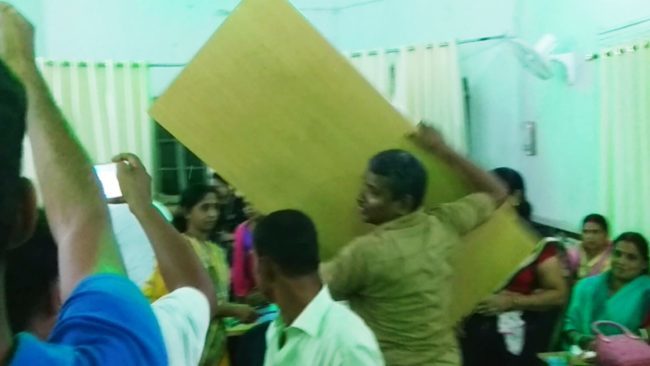 आपसी तकरार के बाद पार्षदों ने उठाई कुर्सियां और और टेबल