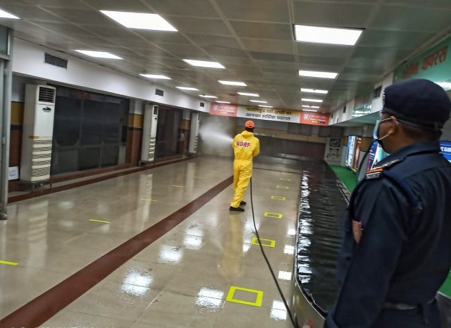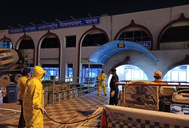 कोरोना वायरस संक्रमण से बचाव के मद्देनजर पटना एयरपोर्ट का सेनिटाइजेशन