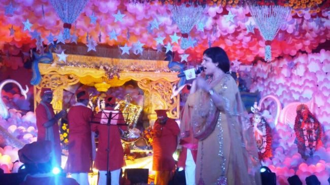चैत्र मास के नवरात्र के मौके पर नवरात्र के 6ठे दिन पटना के श्रीकृष्ण मेमोरियल हॉल में आज भगवती जागरण का आयोजन हो रहा है. ये आयोजन मां वैष्णो देवी सेवा समिति के द्वारा हो रहा है. इस मौके पर मशहूर गायिका कविात पौंडवाल और लखबीर सिंह लक्खा के गीतों से लोग मां की भक्ति में डूबे नजर आ रहे हैं.