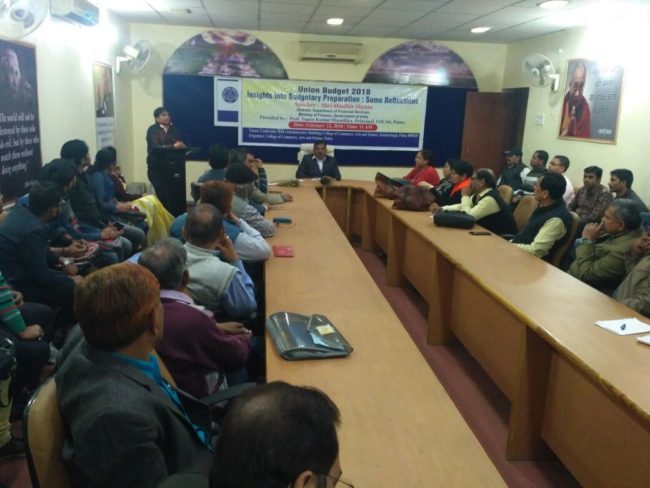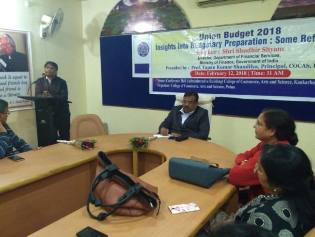 अपने अध्यक्षीय भाषण में प्रधानाचार्य प्रोफेसर डॉ तपन कुमार शांडिल्य ने बजट के तकनीकी पक्ष पर प्रकाश डाला. उन्होंने कहा कि केन्द्र और राज्यों में एक ही पार्टी की सरकार होने पर ही राज्यों का समूचित विकास संभव है और इसी उद्देश्य से नीति आयोग का गठन किया गया है ताकि बजट बनाते समय राज्यों के हितों का विशेष ध्यान रखा जा सके. व्याख्यान में डॉ संजय पाण्डे, प्रो शिव कुमार यादव, डॉ विनोद कुमार मंगलम, डॉ आर यू सिंह और डॉ अनिल कुमार ने बजट से संबंधित विभिन्न विषयों ज़ीरो बजट, घाटा बजट, शिक्षा लोन और जी एस टी से संबंधित प्रश्न उठाए. इस अवसर पर अन्य लोगों के आलावा प्रो उमेश प्रसाद , प्रो. रश्मि आखिरी, डॉ. के एन यादव, प्रो. लक्ष्मी सिंह, और प्रो. अरविंद आदित्य राज समेत बड़ी संख्या में शिक्षक और छात्र-छात्रायें उपस्थित थे. धन्यवाद ज्ञापन प्रो मृदुला कुमारी ने किया जबकि मंच संचालन प्रो सलोनी कुमार ने किया.