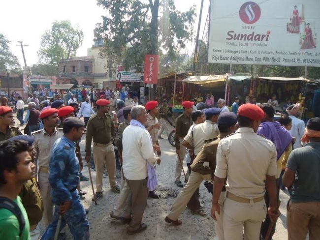 शनिवार की सुबह फुलवारी शरीफ थाना के सामने शहीद भगत सिंह चौक के पास नेशनल हाइवे 98 और पटना – खगौल मुख्य मार्ग को जाम कर जमकर प्रदर्शन किया. धुपार चक से आये ग्रामीणों और आरोपितों के परिजनों ने सड़क पर टायर आदि जलाकर आगजनी करते हुए पुलिस के खिलाफ जमकर नारेबाजी की. सड़क जाम से मैट्रिक परीक्षार्थियों के फंसे होने की खबर मिलते ही फुलवारी शरीफ थानेदार धर्मेन्द्र कुमार और खगौल थानेदार संजय कुमार पाण्डेय ने प्रदर्शनकारियो को समझाने का काफी प्रयास किया, लेकिन जब लोग सड़क से हटने को तैयार नही हुए तो पुलिस ने हल्का बल प्रयोग कर सबको खदेड़ दिया.