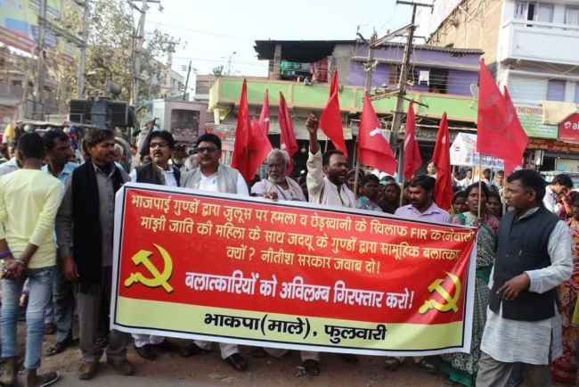 भाकपा माले ने निकाला विरोध मार्च, थाने का भी किया घेराव