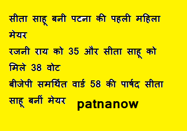 पटना के वार्ड 58 की पार्षद सीता साहू पटना की पहली महिला मेयर चुनी गई हैं. सीता साहू की टक्कर वार्ड 22सी की पार्षद रजनी राय से थी.