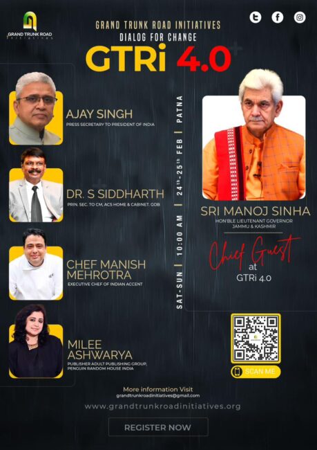 पटना, 23 फरवरी(ओ.पी. पाण्डेय). बिहार की राजधानी पटना में शनिवार से शुरू हो रहा है GTRI (ग्रैंड ट्रंक रोड इनिसिएटिव) का चौथा बहुचर्चित संवाद कार्यक्रम. 24-25 फरवरी तक होने वाले इस दो दिवसीय आयोजन में दुनिया भर से फेमस बिहारी प्रतिभाओं का आगमन होगा और सभी मिलकर बिहार के सकारात्मक विकास की बातें करेंगे. मंच पर अपनी मेहनत के बल पर बिहार का परसेप्शन चेंज करने वाले अपने क्षेत्र में शीर्ष शख्सियतों का आगमन होगा.