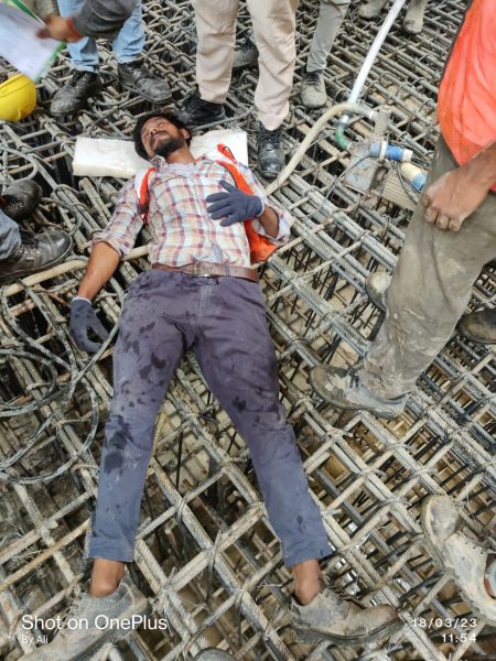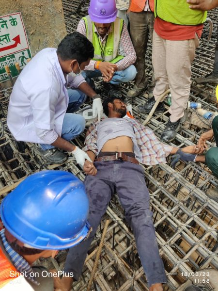 भूमिगत सुरंग स्थल के 17 मीटर गहरे शाफ्ट में एक मजदूर के घायल होने की सूचना प्रशासनिक कार्यालय को मिली.एमयूएच स्टेशन में बेस स्लैब, लॉन्चिंग शाफ्ट पर रीइंफोर्समेंट और टीबीएम लोअरिंग की तैयारी का काम चल रहा था. करंट लगने के बाद एक मजदूर बेहोश हो गया और बेस स्लैब की सतह पर गिर गया. वह डी वॉल कोर कटिंग के काम में इस्तेमाल होने वाले इलेक्ट्रिकल केबल के साथ काम कर रहा था. पर्यवेक्षक ने साइट सुरक्षा अधिकारी को सूचित किया और नीचे शाफ्ट में साइट पर चिकित्सा आपात स्थिति के बारे में जानकारी दी. सूचना मिलने के बाद आपातकालीन बचाव दल को सतर्क कर दिया गया और बचाव कार्य शुरू किया गया.