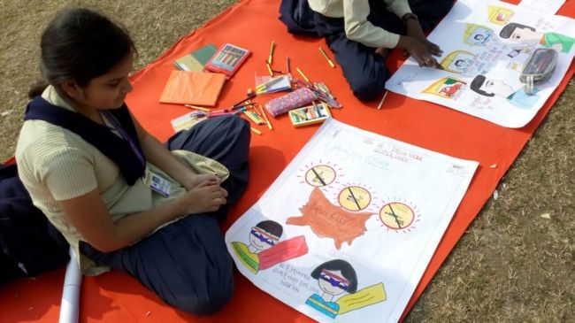 नशामुक्ति के लिए राज्यव्यापी मानव श्रृंखला में लोगों को जागरूक करने के लिए पटना जिला स्तरीय अंतर विद्यालय चित्रकला प्रतियोगिता का आयोजन जिला प्रशासन की ओर से इको पार्क में किया गया. जिसमें पटना के 18 स्कूलों के 118 छात्र छात्राओं ने शिरकत किया. बच्चों ने अपने अंदर की कल्पना शक्ति को कागज़ पर बड़े ही रोचक अंदाज में प्रस्तुत किया . नन्हे हाथों में ब्रश थामे हर बच्चा अपने समाज के लिए एक सन्देश दे रहा था .कोई नशा मुक्ति का संदेश दे रहा था तो कोई नशे में जाल में फंसे समाज को निकालने के संदेश दे रहा था .बच्चों में इस विषय को लेकर भी काफी उत्सुकता देखि गई .