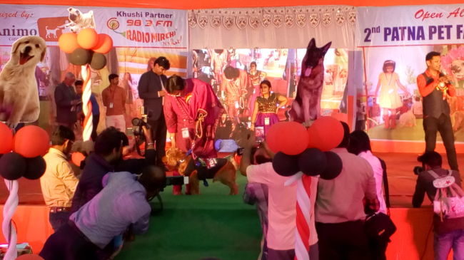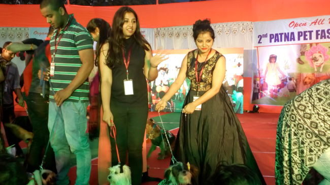पटना में रविवार की शाम पालतु पशुओं के फैशन शो के नाम रही. राजधानी के भारतीय नृत्य कला मंदिर के ओपन थियेटर में आयोजित दूसरे पेट फैशन शो में पशु प्रेमियों के साथ उनके कुत्तों ने भी जमकर धमाल मचाया. रंग-बिरंगी रोशनी और डीजे की धुन के बीच तरह-तरह के परिधानों में पहुंचे विश्व की कई वेराइटीज के कुत्तों का जलवा देखते बन रहा था.