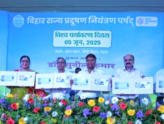 कार्यक्रम में आगत अतिथियों को स्वागत करते हुए अध्यक्ष बिहार राज्य प्रदूषण नियंत्रण पर्षद डॉ. डी. के. शुक्ला ने अपने संबोधन में कहा कि मानवीय कारणों से प्रदूषण में वृद्धि हुई है. उनके द्वारा जलवायु परिवर्तन, सतही एवं भूगर्भीय जल का क्षरण, वायु प्रदूषण एवं जल प्रदूषण के सुधार के लिए किये जा रहे प्रयासो से सूक्ष्म धूलकणों एवं नदियों में फिकल कॉलीफॉम में दर्ज की जा रही कमी के बारे में जानकारी दी गयी.विश्व पर्यावरण दिवस के थीम के विषय पर बताया गया कि प्लास्टिक एक पॉलीमर है जो अपने अवयवों में टूट कर माइक्रोपॉलीमर में विघटित होते है. ये जब पर्यावरण में आते हैं तो पर्यावरण एवं जीवों के स्वास्थ्य के लिए हानिकारक होते हैं= इसके निर्माण में विरंजकों (Colourant) में कलर के लिए थैलेट एवं अन्य हानिकारक पदार्थों का उपयोग किया जाता है जो कैंसर जैसी बीमारियां उत्पन्न कर सकती है. अमेरिका, चीन इत्यादि देशों में प्लास्टिक का उपयोग भारत से ज्यादा है. आज जरूरत है कि हम इसके सही निपटान में सहयोग करें एवं प्लास्टिक प्रदूषण की रोकथाम में हाथ बटायें. इस अवसर पर बिहार राज्य प्रदूषण नियंत्रण की स्थापना के 50 गौरवशाली वर्ष के उपलक्ष्य में विशेष आवरण (Special Cover) का लोकार्पण माननीय मंत्री पर्यावरण, वन एवं जलवायु परिवर्तन विभाग, बिहार डॉ०. सुनील कुमार द्वारा किया गया. राज्य पर्षद की स्थापना की 50वीं वर्षगांठ के उपलक्ष्य में पर्षद के विगत 50 वर्षों की यात्रा पर प्रकाशित हिन्दी भाषा की ‘स्मारिका’ तथा आंग्ल भाषा में वैज्ञानिक आलेखों के संकलन का भी अनावरण मुख्य अतिथि द्वारा किया गया.