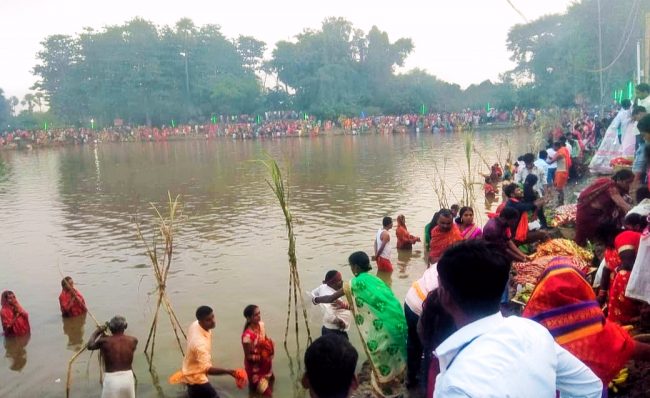 फुलवारी में अस्ताचलगामी सूर्य को अर्घ देकर श्रद्धालुओं ने की सुख समृद्धि की कामना