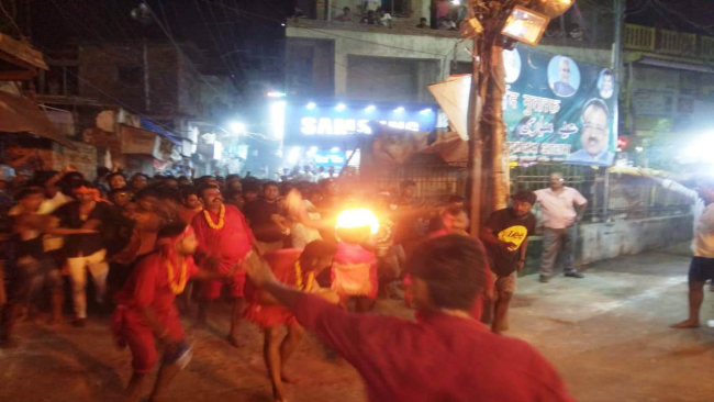 आगे आगे खप्पड़ में जलता हुआ आग लेकर दौड़े पुजारी और उनके पीछे दौड़ा 61 हजार से अधिक श्रद्धालुओं का जन सैलाब