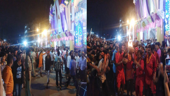 फुलवारीशरीफ (अजीत कुमार की रिपोर्ट) | रविवार को पटना के फुलवारीशरीफ में एक अभूतपूर्व एवं अनुशासन से लवरेज रोमांचित कर देने वाला अलौकिक 201वां माता की खप्पड़ डोली निकली. इस दृश्य को देखकर शहरवासी गौरवान्वित हो रहे थे. इस वर्षो पुरानी पुरखो के जमाने से चली आ रही परम्परा को निभाने में मुस्लिम भाइयो ने हिन्दू समुदाय के साथ बढ़ चढ़ कर सहयोग दिया. संध्या के साढ़े सात बजते ही माता के मंदिर के पुजारी जीतमोहन पंडित सबसे आगे-आगे हाथ में जलता हुआ खप्पर लेकर निकले. पूजारी जी के दौड़ते ही उनके पीछे हजारों श्रद्धालुओं का सैलाब हाथों में पारंपरिक हथियार, तलवार, भाला त्रिशूल लिए माता के जयकारे लगाते खप्पड़ दौड़ परिक्रमा शुरू कर देते हैं. जय माता दी के जयकारे से चारों दिशाएं गूंजने लगती हैं. करीब 61 हजार से अधिक श्रद्धालुओं का सैलाब अपने शहर के दो सौ साल पुरानी आस्था और परम्परा को आज भी जिस उत्साह से निभा रहे थे. उसका स्वरूप देख लोग आश्चर्यचकित थे. आस्था की एक अनोखी तस्वीर देखने को मिल रही थी. यह दृश्य किसी को भी एक बार रोमांचित करने के लिए काफी था.