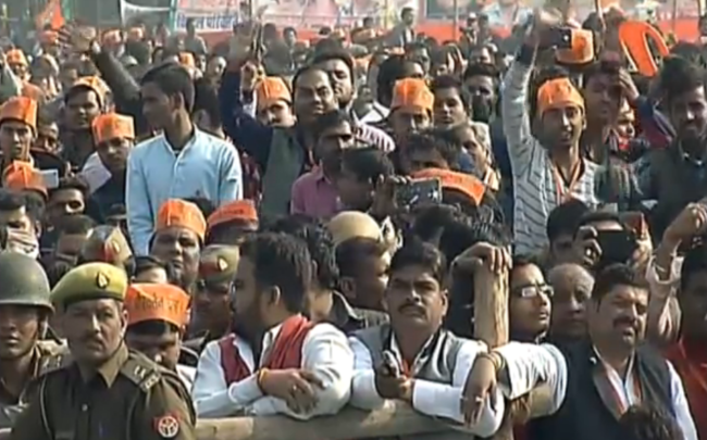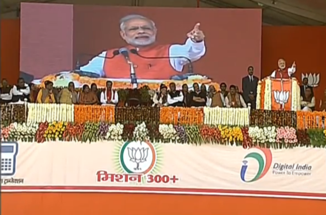 प्रधानमंत्री ने समाजवादी सरकार पर भी हमला बोला. उन्होंने कहा कि यूपी ने परिवर्तन का संकल्प ले लिया है. यूपी में गुंडागर्दी से परिवर्तन की आग है. यूपी के लोग गुंडागर्दी से तंग आ गए हैं. यूपी में गुंडागर्दी करने वालों को शह दे रही है राज्य सरकार.