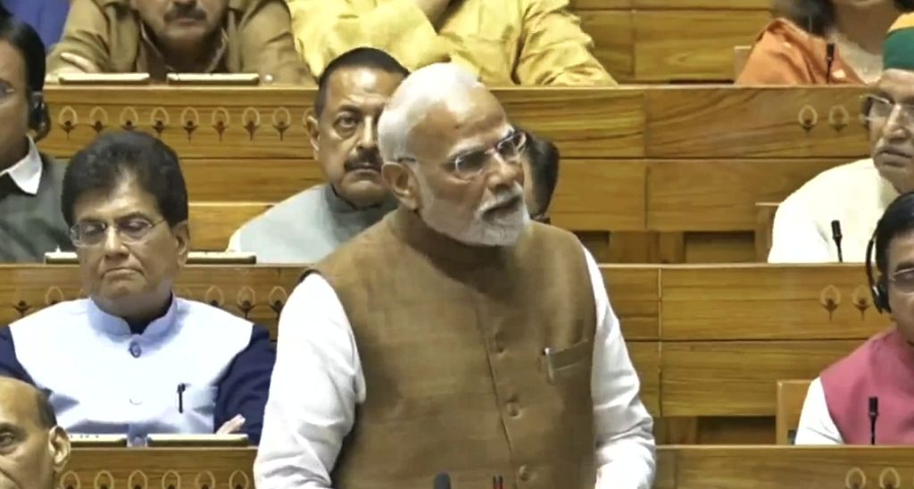 प्रधानमंत्री नरेंद्र मोदी ने मंगलवार को लोकसभा में ऑपरेशन सिंदूर पर बहस में हिस्सा लिया. पीएम मोदी ने अपने एक घंटा 40 मिनट की स्पीच में ट्रम्प का नाम लिए बिना कहा, ‘ऑपरेशन सिंदूर के दौरान दुनिया में किसी भी देश ने भारत को अपनी सुरक्षा में कार्रवाई करने से नहीं रोका.’