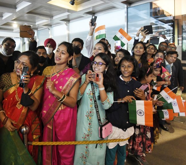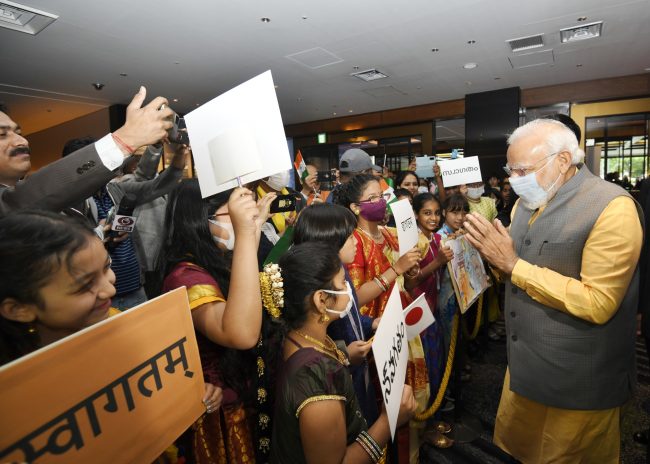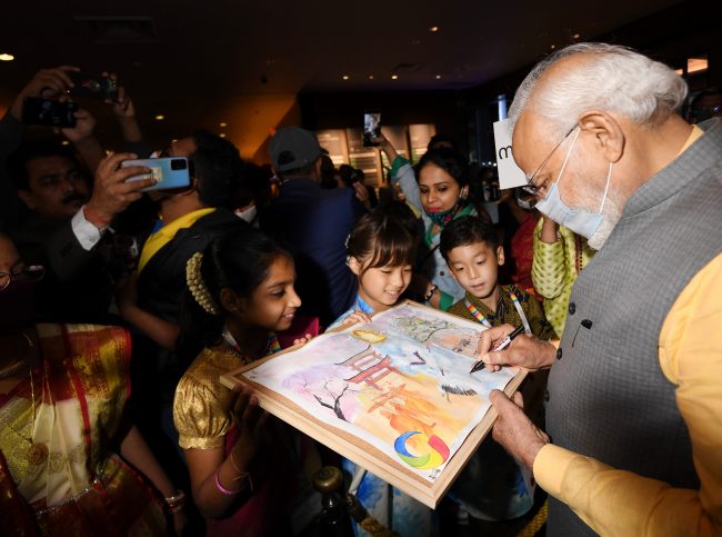 टोक्यो में भारतीय प्रवासी पीएम मोदी को भारत मां का शेर कहते हुए स्वागत किया.प्रवासी भारतीय अपने हाथ में तख्तियां लिए थे, जिसमें मंत्र लिखे थे.पीएम मोदी के साथ बातचीत के बाद पारंपरिक पोशाक में बच्चों ने कहा- उन्होंने हमें अपना आशीर्वाद और ऑटोग्राफ दिया. एक बच्चे ने कहा- पीएम ने मुझसे पूछा कि क्या मैं हिंदी बोल सकता हूं… मैंने उनसे कहा कि मैं नहीं कर सकता. मंत्रोच्चार के बीच, प्रधान मंत्री नरेंद्र मोदी का टोक्यो, जापान में भारतीय प्रवासियों का गर्मजोशी से स्वागत किया गया. टोक्यो एयरपोर्ट पर पहुंचने पर भारतीय मूल के लोगों ने प्रधानमंत्री नरेंद्र मोदी का गर्मजोशी के साथ स्वागत किया.