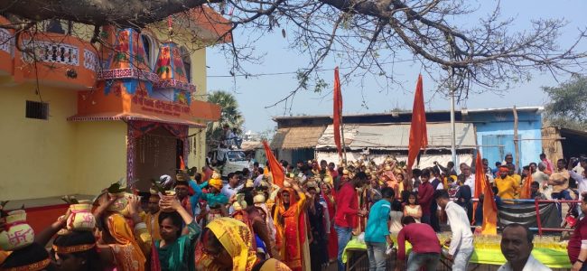 कोइलवर/भोजपुर,01मार्च. भोजपुर जिला अंतर्गत कोइलवर नगर पंचायत स्थित वार्ड 3 के मिश्रटोला में नव निर्मित गायत्री मंदिर में प्राणप्रतिष्ठा को लेकर एक भव्य कलश यात्रा कर जलभरी किया गया. इस यात्रा में सैकड़ो लोग शामिल हुए.