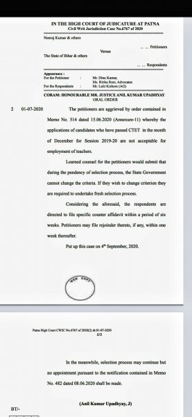बिहार में बुधवार को दिन भर प्राथमिक शिक्षकों के नियोजन की प्रक्रिया पर रोक की खबर आग की तरफ फैलती रही. हालांंकि सच्चाई कुछ और ही थी. पटना हाईकोर्ट ने नियोजन की प्रक्रिया पर रोक नहीं लगाई है. ऑर्डर में यह साफ लिखा है कि नियोजन की प्रक्रिया जारी रह सकती है. हालांकि इसे तब तक पूरा नहीं किया जा सकता जब तक की पटना हाईकोर्ट में सीटेट दिसंबर पास अभ्यर्थियों का मामला चल रहा है. ऐसे में यह बड़ा सवाल है कि आखिर यह भ्रम किसने फैलाया.