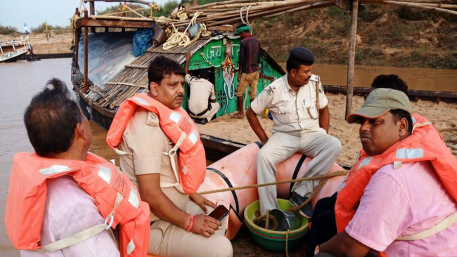 सोमवार को सदर एसडीओ अरुण प्रकाश, एसडीपीओ पंकज कुमार, खनन पदाधिकारी प्रमोद कुमार, कोईलवर थानाध्यक्ष रंजीत कुमार समेत पुलिस बल सोन नदी में निर्माणाधीन पुल के खंभे के समीप अवैध रूप से बालू मजदूर बालू काट रहे थे जिसकी सूचना पर प्रशासन हरकत में आया. छापेमारी के लिये भारी संख्या में पुलिस बल को आता देख निर्माणाधीन पुल से सटे बालू का अवैध उत्खनन कर रहे नाव और उस पर सवार मजदूर सोन नद के रास्ते गंगा नदी की ओर भाग निकले. पुलिस ने दो नाव को पकड़ जब्त व चार मजदूर को हिरासत में लिया है. बाकी दर्जनों मजदूर नदी में कूद भाग निकले. एसडीपीओ पंकज कुमार ने बताया कि अवैध बालू उत्खनन को लेकर प्रशासन द्वारा आने वाले दिनों में छापेमरी अभियान जारी रखेगी. मालूम हो कि सोन नद में जलस्तर वृद्धि के साथ सारण, वैशाली व पटना जिला के सैकड़ो नाव कोईलवर पुल के समीप बालू उत्खनन करने पहुँचते है. जो कोईलवर में निर्माणाधीन सिक्स लेन पुल के समीप से अंधाधुंध बालू का उत्खनन कर नदी के रास्ते ही डोरीगंज, हाजीपुर, सोनपुर या अन्य जगहों बालू ले जाते है.