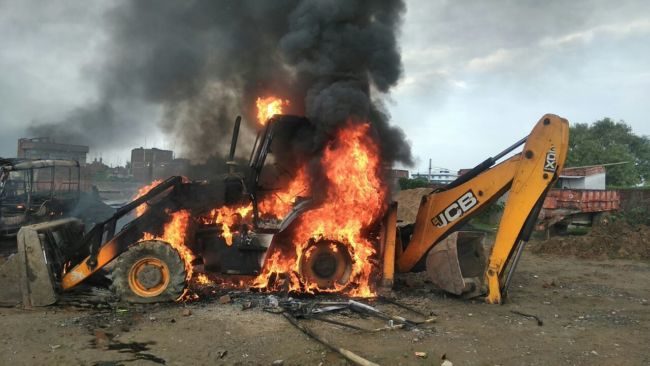 बता दें कि पुलिस और प्रशासनिक अधिकारी राजीव नगर के एक हिस्से को अवैध निर्माण से मुक्त कराने गए थे. लेकिन स्थानीय लोगों ने विरोध कर दिया और इस दौरान भीड़ ने न केवल पुलिस पर पथराव किया बल्कि पुलिसकर्मियों को कई मीटर तक पीछे खडदेड़ दिया. हंगामे के दौरान गुस्साये लोगों ने पुलिस की जिप्सी समेत तीन JCB को भी आग के हवाले कर दिया. बात इतनी बिगड़ गई कि पुलिस को करीब 50 राउंड हवाई फायरिंग करनी पड़ी.