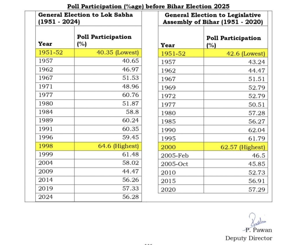 चुनाव आयोग ने आज बिहार विधानसभा चुनाव के पिछले सभी आंकड़े जारी किए हैं जिनसे स्पष्ट है कि इससे पहले अधिकतम मतदान वर्ष 2000 में हुआ था जब 62.57% वोटिंग दर्ज हुई थी. इस बार मतदाताओं ने इस आंकड़े को भी पार करते हुए नया रिकॉर्ड बना दिया है.