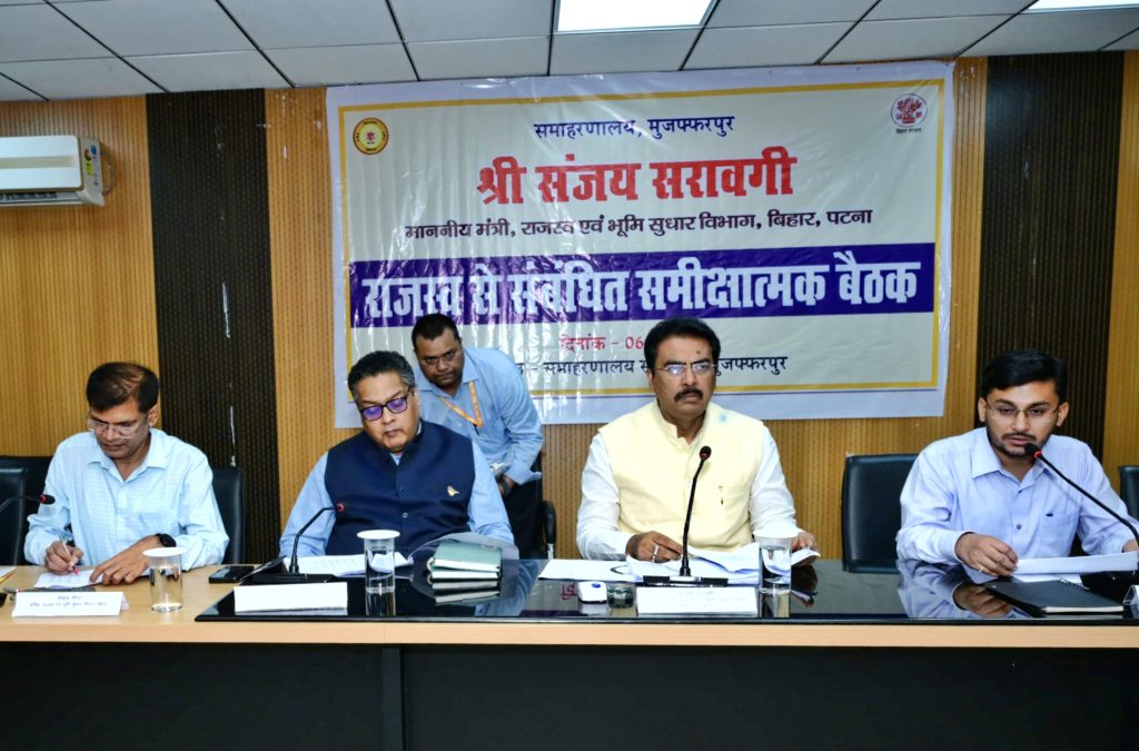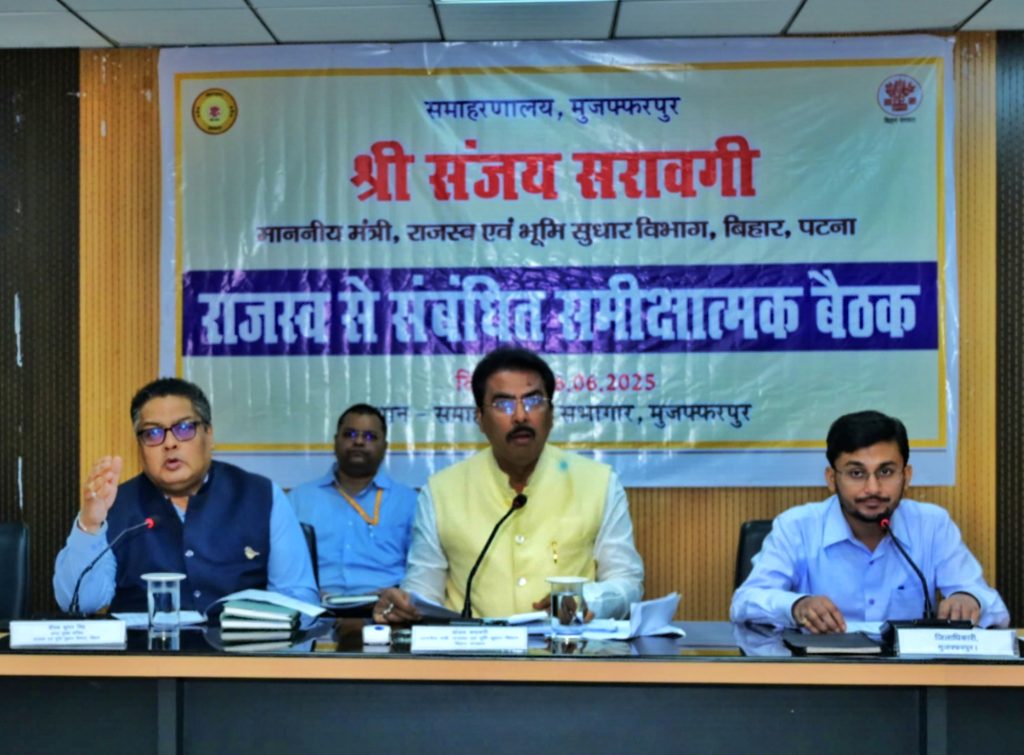 मुजफ्फरपुर ।। मंत्री, राजस्व एवं भूमि सुधार विभाग संजय सरावगी की अध्यक्षता में शुक्रवार को मुजफ्फरपुर समाहरणालय सभागार में राजस्व से संबंधित कार्यों की समीक्षात्मक बैठक आयोजित हुई तथा आवश्यक निर्देश दिया गया. उन्होंने अधिकारियों को जनता के कार्यों को सर्वोच्च प्राथमिकता देते हुए पूरी पारदर्शिता, संवेदनशीलता एवं जवाबदेही से निश्चित समयावधि में विभागीय प्रावधान एवं नियमों के अनुरूप निष्पादन करने का निर्देश दिया.