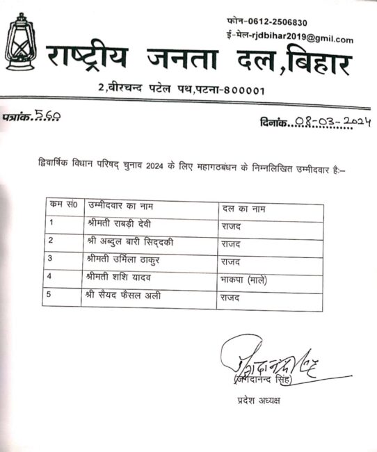 By dnv md Mar 8, 2024 #Mlc chunav #Rjd list
