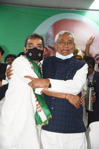 रालोसपा का जदयू मेंं औपचारिक तौर पर रविवार को विलय हो गया. मुख्यमंत्री नीतीश कुमार वीरचंद पटेल स्थित जदयू कार्यालय के कर्पूरी सभागार में रालोसपा के जदयू में विलय को लेकर आयोजित मिलन समारोह में शामिल हुये.