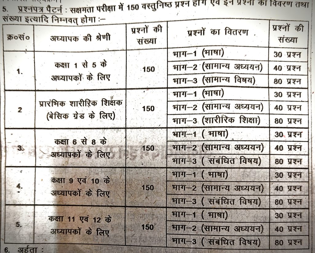 सक्षमता5 परीक्षा 1-5, 6-8, 9-10 व 11वीं-12वीं के शिक्षकों के लिए ऑनलाइन यानी कंप्यूटर बेस्ड होगी. परीक्षा 2 घंटा 30 मिनट की होगी. इसमें 150 वस्तुनिष्ठ प्रश्न पूछे जाएंगे. बड़ी बात यह कि इस परीक्षा में निगेटिव मार्किंग नहीं होगा. आवेदन के दौरान समस्या होने पर हेल्पलाइन नंबर 7903859788 पर या [email protected] पर मेल भेज सकते हैं.