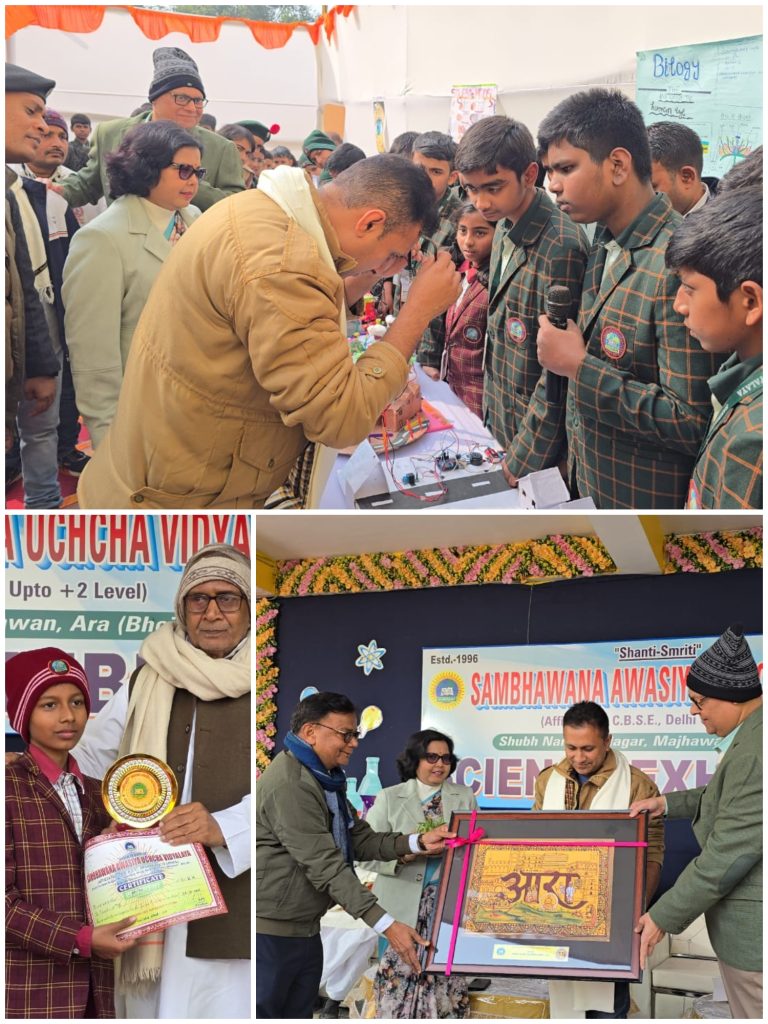 आरा,23 दिसंबर। शहर के शुभ नारायण नगर मझौंवा स्थित ‘शान्ति स्मृति’ संभावना आवासीय उच्च विद्यालय परिसर में सोमवार को विज्ञान प्रदर्शनी का भव्य आयोजन किया गया। प्रदर्शनी का उद्घाटन मुख्य अतिथि बक्सर विधायक एवं पूर्व आईपीएस अधिकारी आनंद मिश्र, विशिष्ट अतिथि वीकेएसयू के पूर्व कुलपति आचार्य धर्मेंद्र तिवारी सहित अन्य गणमान्य अतिथियों ने संयुक्त रूप से दीप प्रज्ज्वलित कर किया।