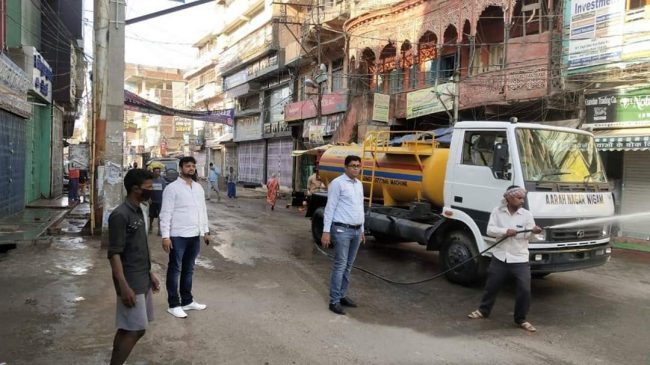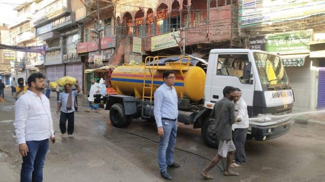 आरा,26 मार्च. आरा नगर निगम ने कोरोना को लेकर सतर्कता दिखाते हुए आज से शहर को सेनेटाइज करने का काम शुरू किया है. शहर के कई भागों को आज सेनेटाइज किया गया.