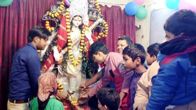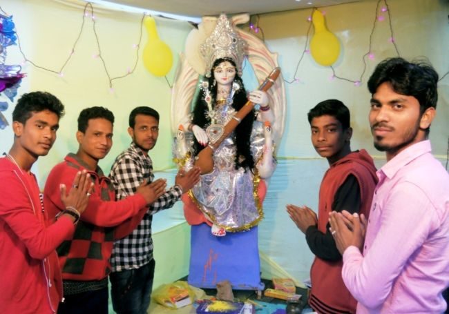 पटना के पुनपुन पीएचसी के पास स्थानीय मुस्लिम छात्रों ने माँ शारदे की पूजा अर्चना की. ये छात्र 3 साल से यहाँ सरस्वती माँ की प्रतिमा स्थापित कर रहे हैं. मौजूद छात्र फरदीन रजा, मो अफजल, मो सलमान,मो दानिश, मो सैफ ने बताया कि पहले हिन्दू दोस्तों को विद्या और विवेक के लिए माँ शारदे की पूजा करते देखते थे. तभी से ऐसा ख्याल आया कि हमें भी माँ की पूजा करनी चाहिये. 3 साल से हमलोग प्रतिमा स्थापित कर माँ की पूजा कर रहें हैं.