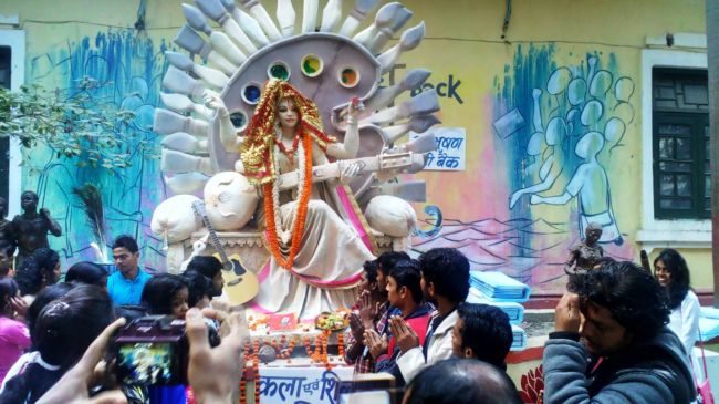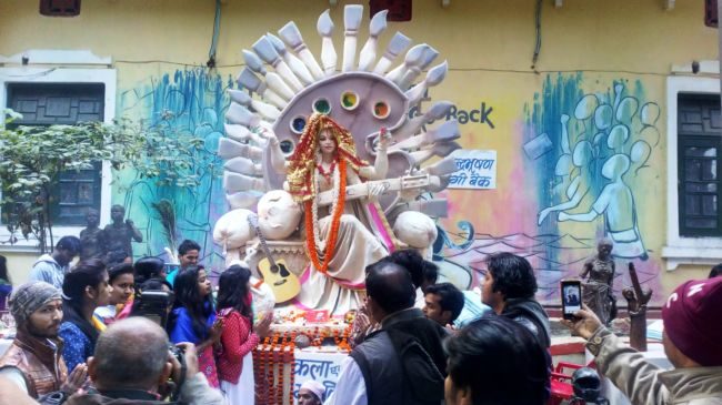 पटना के नवरत्नपुर में भी एक कोचिंग संस्थान से जुड़े छात्रों ने मां की प्रतिमा स्थापित की है.