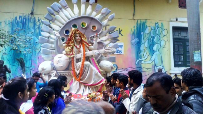 पटना आर्ट्स कॉलेज में छात्रों ने मां सरस्वती की भव्य प्रतिमा की स्थापना की है. इसके अलावा, कंकड़बाग, कदमकुआं, आशियाना, राजीव नगर, राजेन्द्र नगर, बोरिंग रोड समेत कई जगहों पर छात्रों ने सरस्वती की मूर्ति की स्थापना की और पूरे विधि विधान से पूजा की.