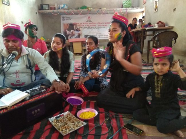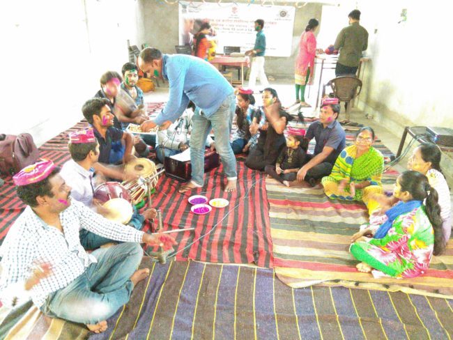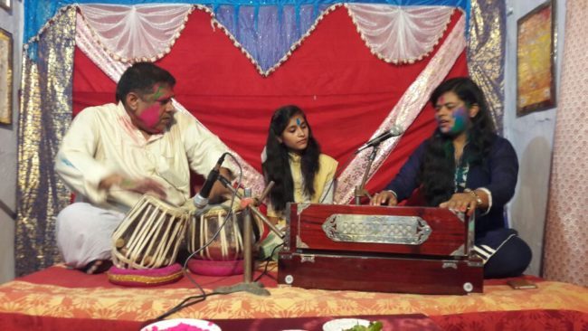 इसके बाद गायन का दौर शुरू हुआ जो श्रीराम, कृष्ण, राधा और भगवान शिव ने नाम पर बने होली गीतों से सराबोर हो गया. अपराह्न 3 बजे से प्रारम्भ हुआ यह कार्यक्रम लगभग शाम 7 बजे तक चला. राजा बसन्त, श्याम शर्मिला और अविनाश पांडेय ने अपनी खनकती आवाज की जादू में रंगों के मिश्रित ली को ऐसा पिरोया कि श्रोता भी कोरस गायक बन बैठे और संगीत के इस रंग में घण्टो गोता लगाए रहे. तबला पर सुरजकान्त पांडेय,झाल पर अविनाश और खँजरी पर लवली श्रीवास्तव ने संगत किया. इस मौके पर श्याम कुमार, सेंटर की ट्रेनर, स्टेट अवार्डी रोमा वर्मा और सरिता शर्मा सहित प्रशिक्षण प्राप्त कर रहीं बच्चियो समेत कई गणमान्य लोग और महिलाएं शामिल थीं.
