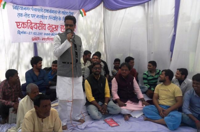 आरा के बिहिया नगर पंचायत के डाकबंगला साहेब टोला सड़क की नारकीय स्थिति के खिलाफ लोगों ने एक दिवसीय अनशन रखा.  अनशन का नेतृत्व समाजसेवी लालबाबू यदुवंशी ने किया.कार्यक्रम में शामिल वक्ताओं ने सड़क की बदहाली पर नाराजगी जाहिर की और इसे तत्काल दुरुस्त कराने की मांग की.