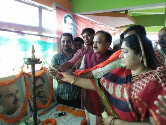 आरा के शाहपुर में बीजेपी के विधानसभा स्तरीय प्रशिक्षण शिविर शुरू हुआ. प्रशिक्षण शिविर के उद्घाटन के मौके पर पार्टी के संस्थापक पंडित दीनदयाल उपाध्याय, डॉ श्याम प्रसाद मुखर्जी और दिवंगत नेता विशेश्वर ओझा के तैल्यचित्र पर माल्यार्पण किया गया. इस मौके पर बीजेपी के राष्ट्रीय मंत्री और पूर्व विधायक रामेश्वर चौरसिया ने कहा कि सिर्फ बीजेपी ही कांग्रेस मुक्त भारत बना सकती है और इसके लिए पार्टी को अपने संगठन को निचले पायदान से लेकर ऊपर तक शक्तिमान बनाना होगा. वही पूर्व विधायक मुन्नी देवी ने कहा कि अगर पार्टी के कार्यकर्ता जमीनी स्तर पर काम करते रहे तो संगठन काफी मजबूत रहता है. साथ ही पार्टी की उपलब्धियों के बारे में लोगों को जानकारी देना भी जरुरी है. बीजेपी नेता सतीश भट्ट और भुअर ओझा ने कहा कि प्रशिक्षण के लिए 5 सत्र हैं, प्रत्येक सत्र के लिए पार्टी के वरीय पदाधिकारियों को प्रशिक्षक बनाया गया है. प्रशिक्षण शिविर की अध्यक्षता सागर गुप्ता एवं संचालन राकेश तिवारी ने किया. जिसमें जिलाध्यक्ष मिथिलेश कुशवाहा, विधानसभा प्रभारी राजवंश सिंह, महामंत्री राजेन्द्र तिवारी, रोहित प्रताप साही, नरेन्द्र तिवारी,दीपक सिंह, रविन्द्र शर्मा, श्रीभगवान राय, रविन्द्र ओझा, पप्पू राय, पंकज तिवारी, चन्दन पांडे, दिनेश सिंह सहित कई कार्यकर्ता शामिल थे.