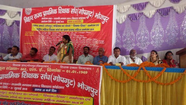 सम्मेलन को संबोधित करते हुए वक्ताओं ने शिक्षा के बाजारीकरण और निजिकरण के दोहरे खतरे के खिलाफ शिक्षकों को सचेत रुप से संघर्ष के लिए एकजुट होने का आह्वान किया. बिहार राज्य प्राथमिक शिक्षक संघ गोपगुट बिहार प्रदेश महासचिव नागेन्द्र सिंह ने कहा कि “समान काम-समान वेतन” के संदर्भ में माननीय सर्वोच्च न्यायालय द्वारा पारित आदेश को मानने से सरकार अपना मुंह मोड़ कर राष्ट्र निर्माता शिक्षकों के साथ ज्यादती कर रही है. वक्ताओं ने कहा कि यदि सरकार ईमानदारी से बिहार में गुणवत्तापूर्ण शिक्षा बहाल करना चाहती तो समान स्कूल प्रणाली को लागू करे और शिक्षकों को गैर शैक्षिणिक कार्यों से पूर्ण रुप से मुक्त करे.
