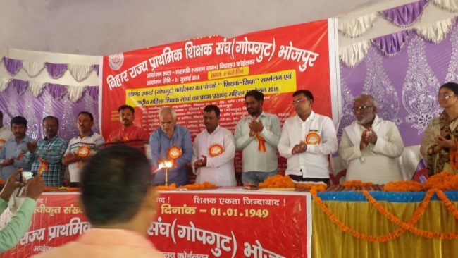 सम्मेलन का विधिवत उद्घाटन मुख्य अतिथि आरती देवी, अध्यक्ष , जिला परिषद भोजपुर, नागेन्द्र सिंह, महासचिव बिहार राज्य प्राथमिक शिक्षक गोपगुट बिहार प्रदेश, राज्याध्यक्ष, रघुवर रजक, राज्य सचिव, कुमार अमरेन्द्र, कमलेश कुमार, राष्ट्रीय महिला शिक्षक मोर्चा बिहार की महासचिव, कुमारी अल्का,राज्य संगठन सचिव, नीलम देवी,राज्य कोषाध्यक्ष, अंजू कुमारी, बिहार राज्य अराजपत्रित कर्मचारी महासंघ गोपगुट के जिलाध्यक्ष, सूर्य नारायण सिंह एवं मंच पर उपस्थित अतिथियों द्वारा संयुक्त रुप से किया गया.
