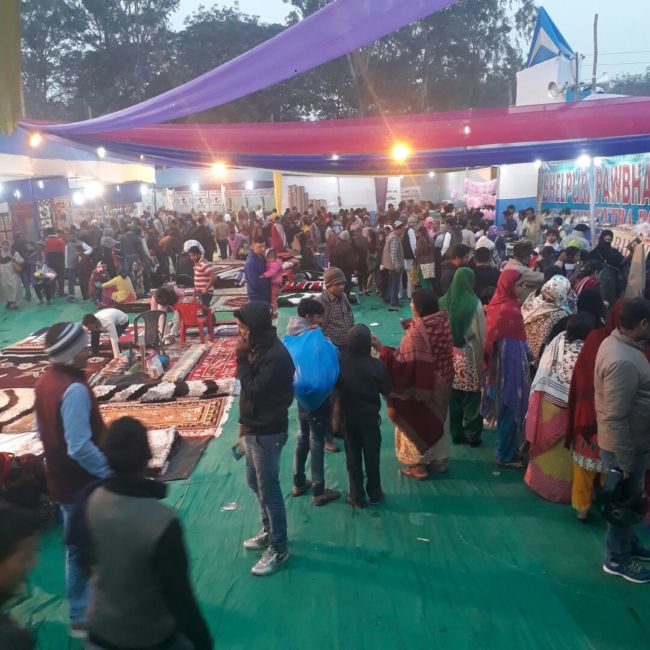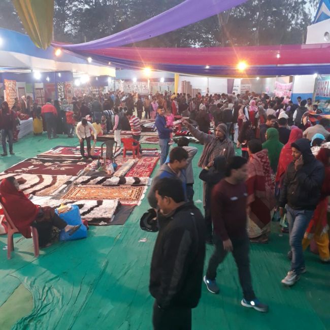 हैंडलूम और हैंडी क्राफ्ट के मनमोहक सामग्री के स्टाल पर लोगों की भीड़