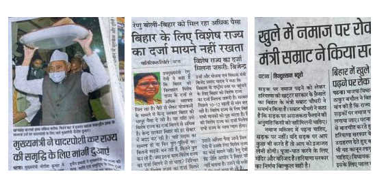सरकार में गंभीर अंतर्विरोध की दूसरी ख़बर नीतीश मंत्रिमंडल के एक सदस्य के बयान से भी मिल रही है. उक्त मंत्री ने सड़क पर नमाज़ पढ़ने को लेकर हरियाणा के मुख्यमंत्री के फ़ैसले का समर्थन किया है . उनका मानना है कि सड़क पर नमाज़ पढ़ने से अराजकता फैलती है और इसकी अनुमति किसी को नहीं मिलनी चाहिए. वहीं भाजपा के एक विधायक, जो अपने सांप्रदायिक बयानों को लेकर सुर्ख़ीयों में रहते हैं, उन्होंने भी सड़क पर नमाज़ पढ़ने पर प्रतिबंध लगाने की मांग की है.