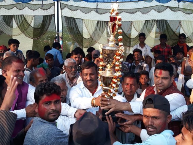 पुरस्कार वितरण संदेश विधायक अरूण कुमार यादव व पैक्स अधयक्ष परमानंद सिंह ने संयुक्त रूप से किया. विधायक ने कहा कि खेल से मानसिक और शारीरिक विकास होता है. खेल को खेल के भावना से खेलनी चाहिए. हर खेल में हार जीत लगी रहती है . हार से निराश नहीं होना चाहिए. मौके पर आयोजनकर्ता ललू यादव,राजद प्रधान महासचिव बिरबल यादव, करूण कुमार, पैक्स अध्यक्ष शिवमंगल सिंह, राम नवमी प्रसाद सुजित व रंजीत सहित कई लोग मौजूद थे. मौजूद लोगों ने खेल के बीच बीच में चीयर्स लिडर्स के डांस का भी भरपूर आनंद उठाया .