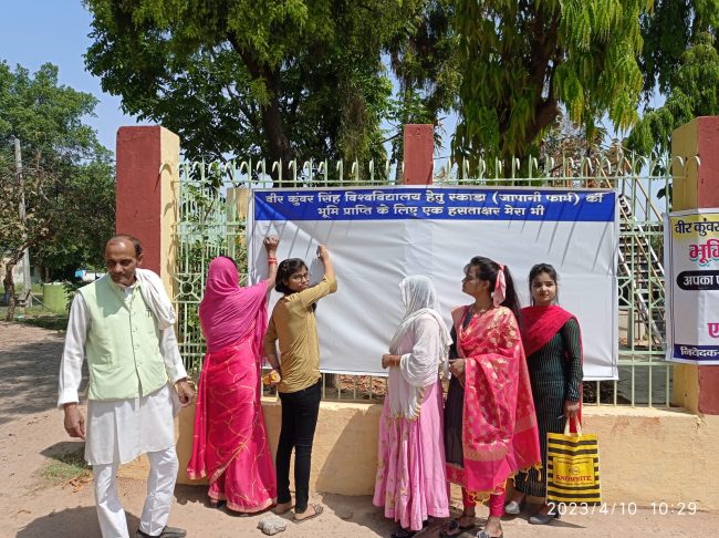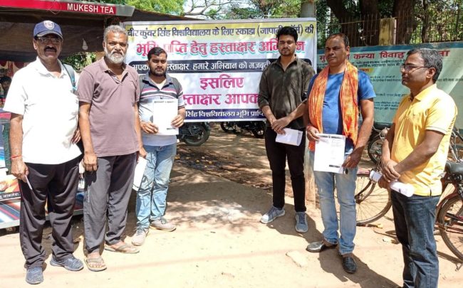 संरक्षक डॉ विनोद कुमार सिंह ने कहा कि अभियान समिति 14 अप्रैल को कुलाधिपति और राज्यपाल को अपनी मांगों से संबंधित ज्ञापन सौंपेगी और जमीन प्राप्ति तक संघर्ष करेगी. हस्ताक्षर अभियान के संयोजक विजय मेहता और मीडिया संयोजक रवि प्रकाश सूरज ने कहा कि अगले दो दिनों तक यह अभियान विश्वविद्यालय में चलाया जायेगा उसके बाद हर जिले में अलग अलग टीमों के माध्यम से तेज़ी लाई जाएगी.