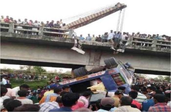 मुजफ्फरपुर/सीतामढ़ी (ब्यूरो रिपोर्ट) । बिहार, खास कर उत्तर बिहार में सड़क हादसा कमने का नाम नहीं ले रहा है. शनिवार शाम करीब सवा पांच बजे एक और भीषण रोड दुर्घटना मुजफ्फरपुर-सीतामढ़ी एनएच-77 पर सीतामढ़ी जिले के रुन्नी सैयदपुर में हुई जो पटना से करीब 111 किलोमीटर उत्तर में है. यह दुर्घटना मुजफ्फरपुर से औराई होते हुए सीतामढ़ी के बसुआ डुमरी जा रही एक यात्री बस के पुलिया तोड़ते हुए 40 फीट के गड्ढे में गिरने से हुई. इस दुर्घटना में 11 लोगो की मौत मौके पर ही हो गई जबकि तीन की मौत इलाज के दौरान हो गई. 44 यात्री घायल हो गए. 32 सीटों वाली इस बस में करीब 60 यात्री सवार थे.