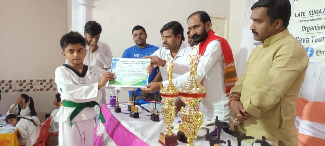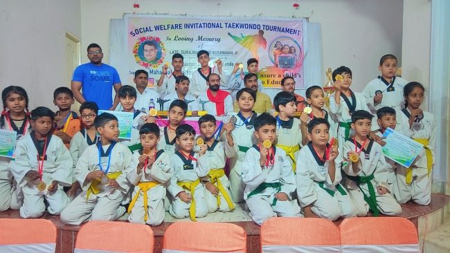 आज दिनांक 9 अप्रैल क़ो गिरिराज उत्सव पैलेस मे पूर्व विधान पार्षद स्व० सूरज नंदन कुशवाहा जी के पुण्यस्मृति मे आयोजित सोशल वेलफेयर इनविटेशनल ताइक्वांडो चैंपियनशिप का समापन किया गया.इस प्रतियोगिता मे पटना एवं बिहार के अन्य जिलों समेत महाकाल गुरुकुल के गरीब असहाय बच्चो ने भी भाग लिया।कार्यक्रम का समापन भाजपा क्रीड़ा प्रकोष्ठ के सतीश राजू जी, समाजसेविका मधु मंजरी, साईं पटना के इंचार्ज सोमेश्वर राय जी, एवं मुकेश पासवान जी एवं विकास कुमार जी ने किया. टीम चैंपियन ट्रॉफी सिटी ताइक्वांडो क्लब क़ो मिला। महाकाल गुरुकुल मे पढ़ रहे स्लम बस्ती के बच्चो ने भी विभिन्न वजन केटेगरी मे पुरुस्कार जीता, जिसमे चिंटू कुमार, चांदनी कुमारी, सुगनी कुमारी क़ो गोल्ड मैडल प्राप्त हुआ.