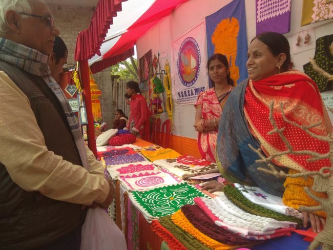 उन्होंने कशीदाकारी एप्लिक वर्क की कई कलाकृतियों को स्टॉल पर घूमकर सूक्ष्मता से देखा और उनके प्रति जिज्ञासा प्रगट करते हुए कहा कि हम सभी का दायित्व है कि ऐसे आकृतियों को अपने घरों में उपयोग करना और खरीदना चाहिए तभी कला घर-घर पहुंचेगी. यह कार्य इसके संरक्षण के साथ कलाकारों को भी आर्थिक रूप से मजबूत करेगा. ट्रस्ट के चेयरमैन श्याम कुमार ने कार्यक्रम का संचालन व आगत अतिथियों को धन्यवाद दिया. उन्होंने बताया कि संस्था द्वारा अब तक लगभग लगभग 9000 लोगों को एप्लिक वर्क,कशीदाकारी, ब्यूटीशियन और पेंटिंग की ट्रेनिंग दी जा चुकी है