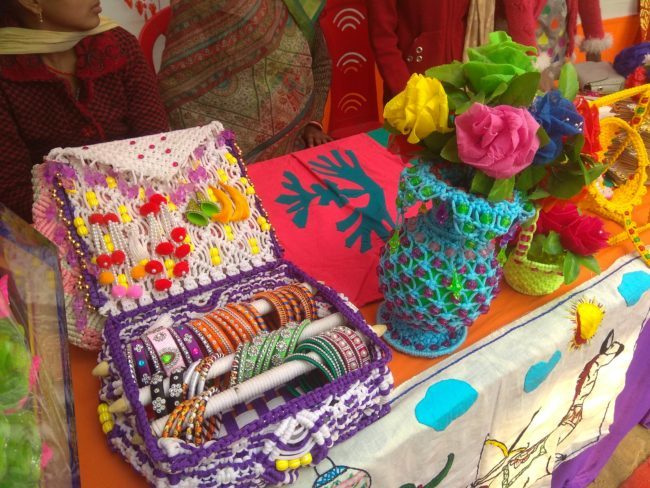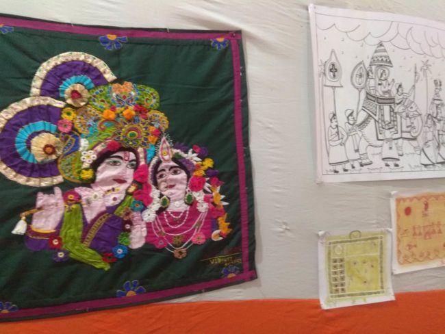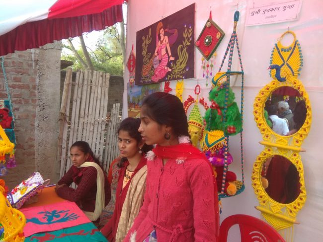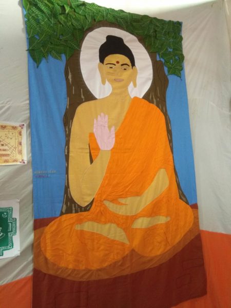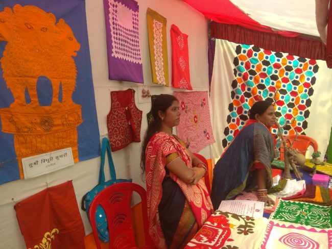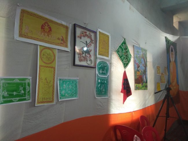 ट्रस्ट की 7वीं वर्षगाँठ पर आयोजित कला गैलरी में वैसे तो पेंटिंग,पर्स, कुशन, तकिया खोल,जैकेट, आईना, चूड़ी, चूड़ी बॉक्स, टेबुल क्लॉथ समेत कई वस्तुएं थी लेकिन एप्लिक वर्क की हुई युवा विभूति कुमारी की एक चादर आकर्षण का केंद्र रही, जिसपर उसने अपनी कल्पना से भगवान बुद्ध को खूबसूरत अंदाज़ में बनाया था. पीपल के पेड़ के नीचे भगवान बुद्ध तो जीवंत दिखते ही थे पीपल के पत्ते लगते मानो अभी हिल पड़ेंगे. बताते चलें कि गोढना रोड की रहने वाली यह विभूति वो कलाकार है जो सुई धागा का नाम सुनकर ही चिढ़ जाती थी लेकिन आज इसकी पहचान इसी सुई-धागे ने दे दी है.