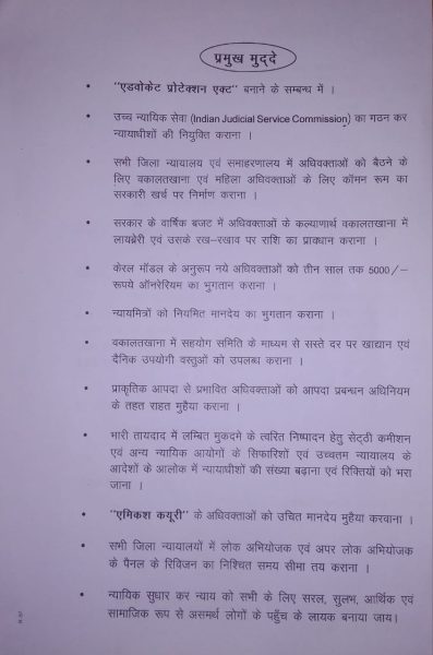 विधि प्रकोष्ठ से जुड़े मांग को बिहार फर्स्ट विजन डॉक्यूमेंट में सम्मिलित कराने का दिया प्रस्ताव