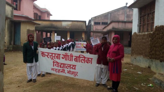 कस्तूरबा के छात्राओं ने मानव श्रृंखला को ले निकली रैली