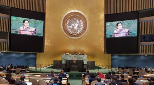 विदेश मंत्री सुषमा स्वराज ने कहा कि संयुक्त राष्ट्र जिन समस्याओं का समाधान तलाश रहा है उनमें आतंकवाद सबसे ऊपर है. उन्होंने कहा, ‘‘अगर हम अपने शत्रु को परिभाषित नहीं कर सकते तो फिर मिलकर कैसे लड़ सकते हैं? अगर हम अच्छे आतंकवादियों और बुरे आतंकवादियों में फर्क करना जारी रखते हैं तो साथ मिलकर कैसे लड़ेंगे? अगर संयुक्त राष्ट्र सुरक्षा परिषद आतंकवादियों को सूचीबद्ध करने पर सहमति नहीं बना पाती है तो फिर हम मिलकर कैसे लड़ सकते हैं?’’